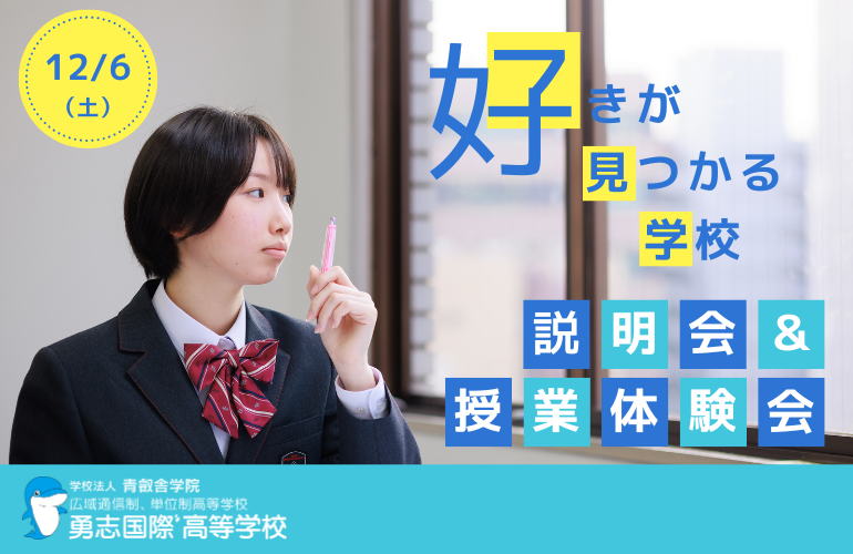 12月6日(土)、勇志国際高等学校 福岡学習センターで【学校説明会&体験会】を開催します。