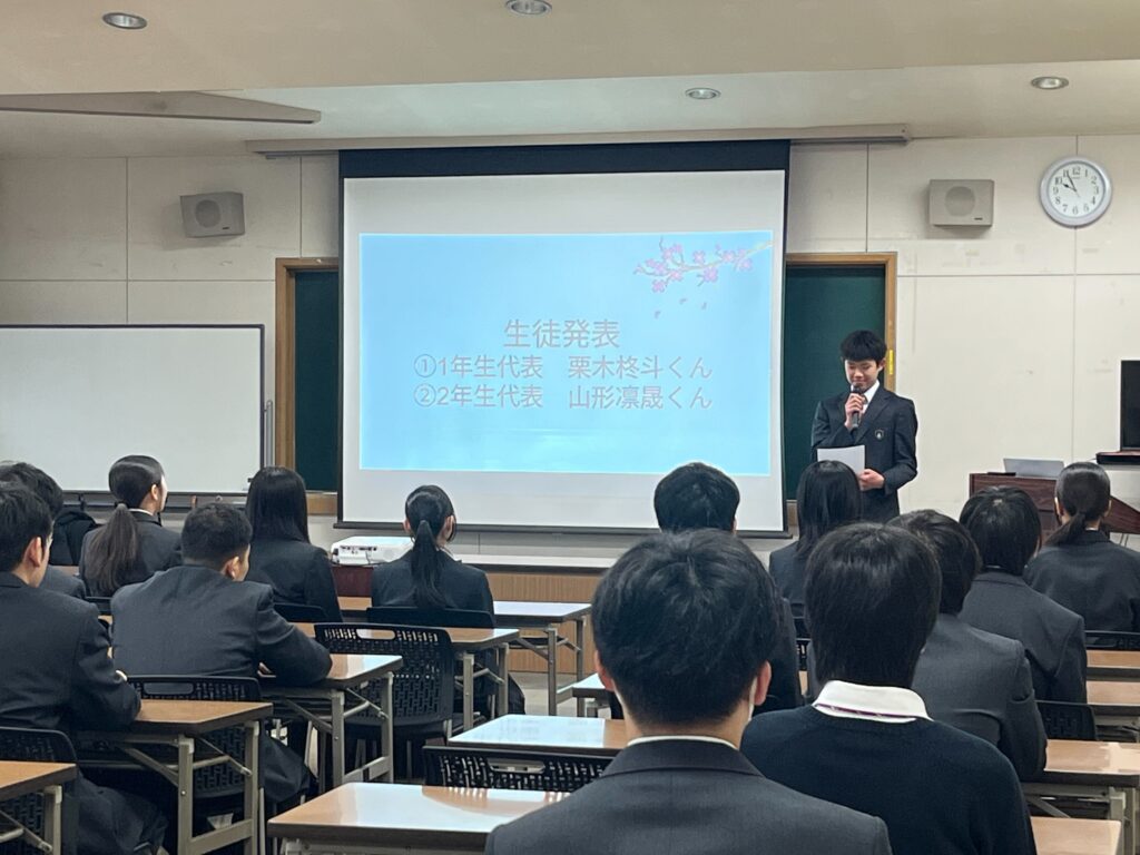 終了式の中盤では、生徒代表が一年間を振り返るスピーチを行いました。