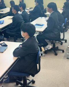 写真は、新入生の教室のようすです。