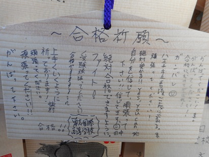 湯島天神では、皆で絵馬に寄せ書きをし、受験生の合格をお祈りしてきました。